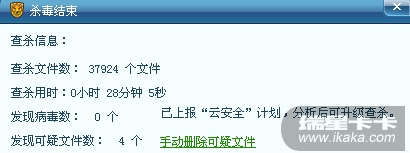 为了能看到每场球赛的精彩片段,早上在央视体育网上下载了视频播放插件CCTVRegOcx.exe和CNTV网页点播加速器,当时安装都未出现异常,只是我在杀毒软件下的电脑防护日志中查看到一个木马行为防御,我点击看了一下却不知道是何软件,但又不放心,便用卡卡安全助手扫描流氓软件:发现一个木马性质的插件,于是当即便用卡卡安全助手清除了。下午心中越想越不对劲,便将杀毒软件升级到最新版全盘查杀,查杀过程中发现了4个可疑文件,杀毒时一般我是用防火墙断开网络查杀的,当我看见电脑上显示的查杀结果时马上连接上网络,直到查杀结束,并按杀毒软件的提示手动删除了这4个可疑文件。之后接着我又在电脑上卸载了上午安装的视频播放插件CCTVRegOcx.exe和CNTV网页点播加速器,想请教一下:我这样处理可疑文件的方法对不对?