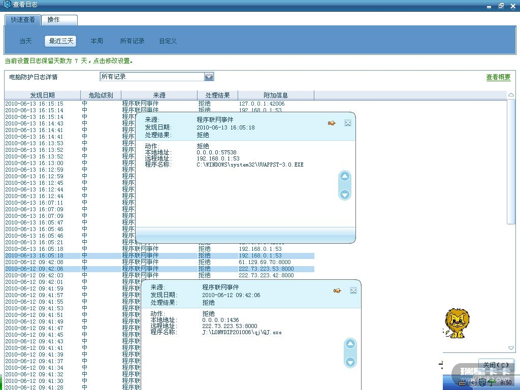 求助:6月8日防火墙提示出现1次电脑攻击后,防火墙日志提示272次程序联网事件,请问到底是什么问题,该怎么处理,谢谢!:kaka2: