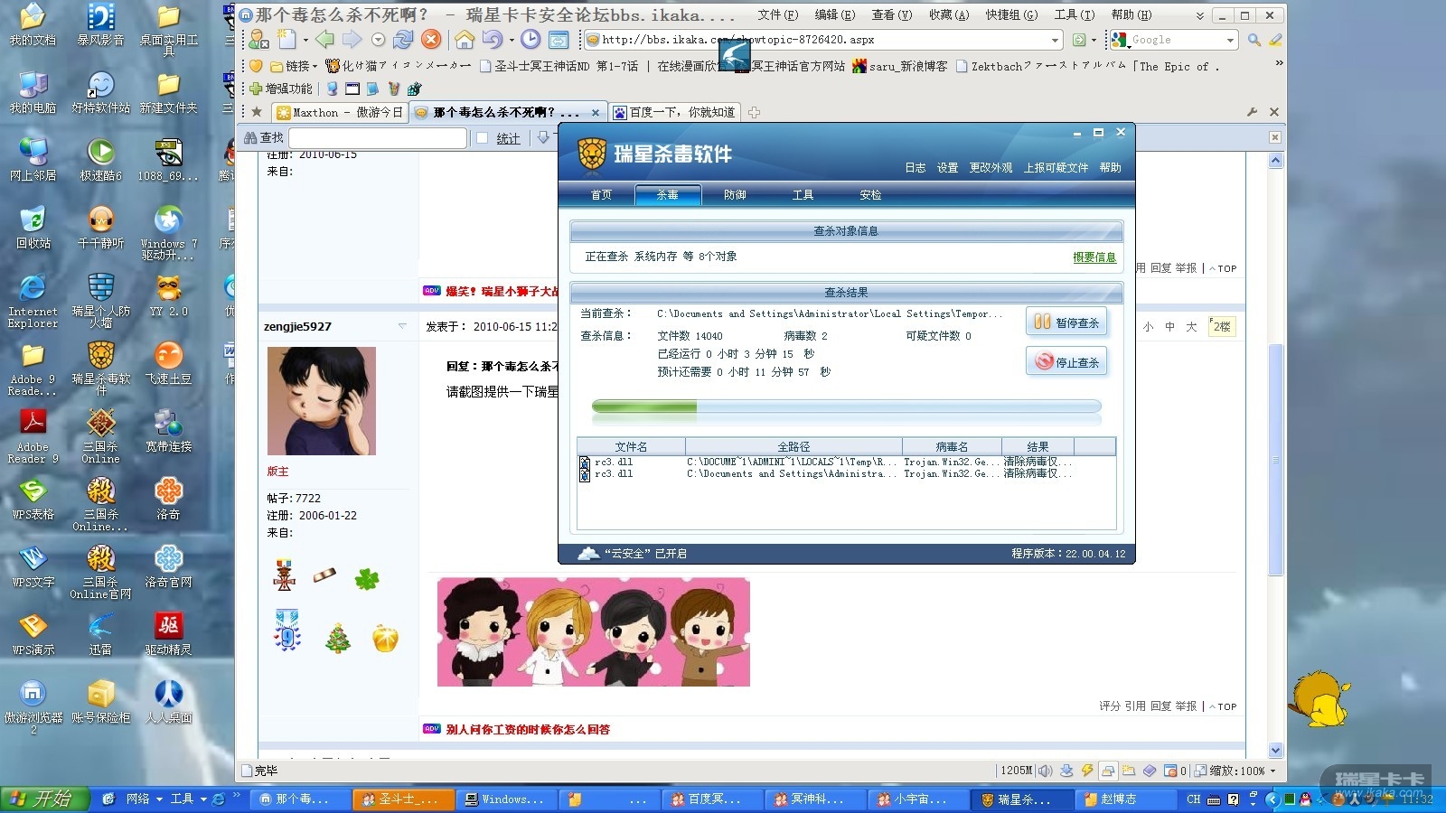请截图提供一下瑞星的查杀结果,病毒路径,病毒名称,瑞星版本,病毒库版本!