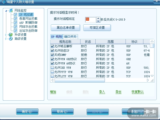 先ping瑞星升级网址,找到IP从防火墙中放行即可。