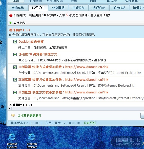 伪造的IE浏览器咋删都删不掉啊!谁能帮帮忙啊!启动里面禁用也不好使阿!瑞星杀毒查不到那个毒 360可以查到但启动后还是有就是删不掉……