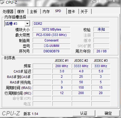 conexant又做内存吗?不太清楚。不知道是代工还是刷上去的型号,如果可以,你找下老板问下吧!金士顿内存还是有很多假的,建议你用“鲁大师”去检测下,或拿到金士顿专卖店去咨询下。