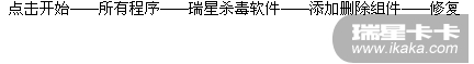 点击开始——所有程序——瑞星杀毒软件——添加删除组件——修复