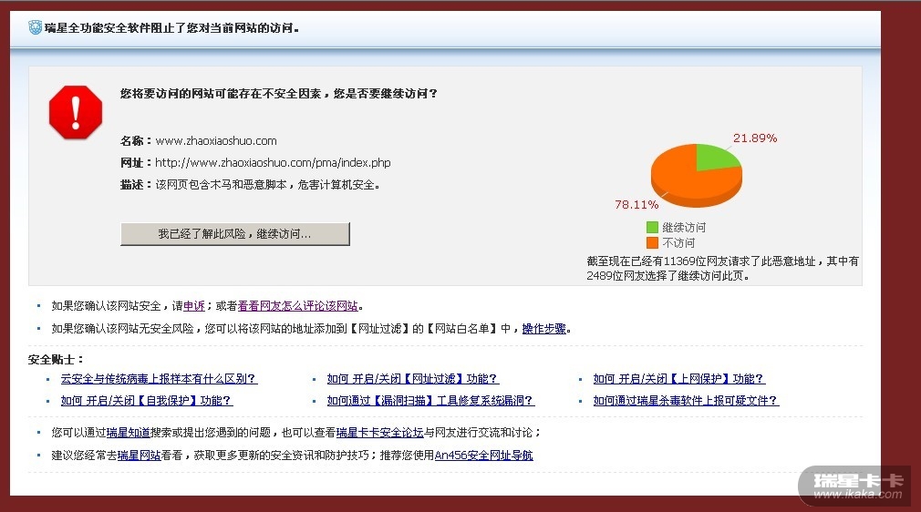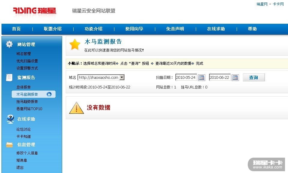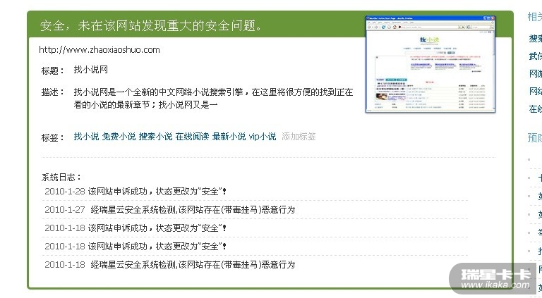 http://site.ikaka.com/domaininfo/www.zhaoxiaoshuo.com没有显示任何有病毒的记录