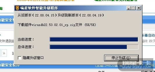跟我一样啊,也是到这里卡好久,我是vista系统,而且瑞星现在升级动不动cpu就100%了,弄得我都不敢自动升级了,改成手动了