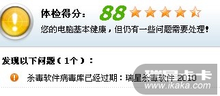 呵呵,还不错,提示瑞星需要升级,但是一点击修复此问题,就是360杀毒硕大的广告页面,马上关掉,嘿嘿,还是喜欢用瑞星!