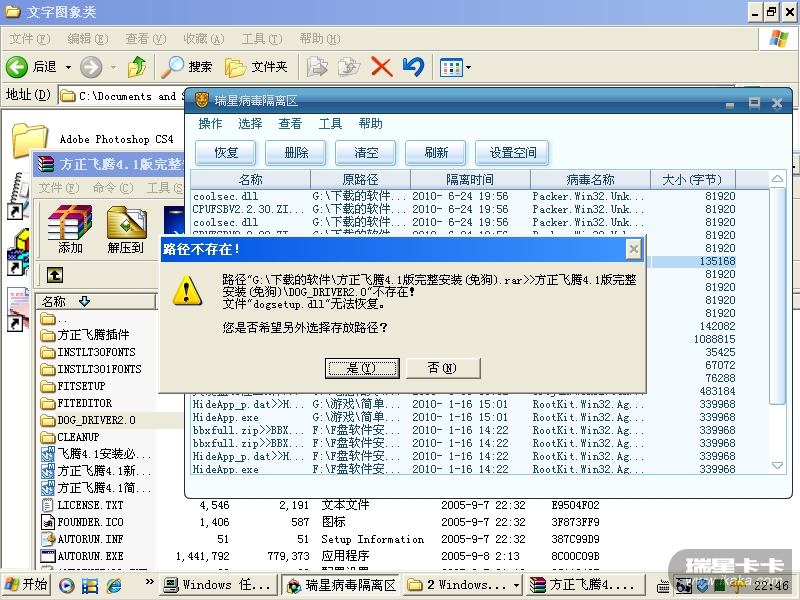 路径"G:\下载的软件\方正飞腾4.1版完整安装(免狗).rar>>方正飞腾4.1版完整安装(免狗)\DOG_DRIVER2.0"不存在!