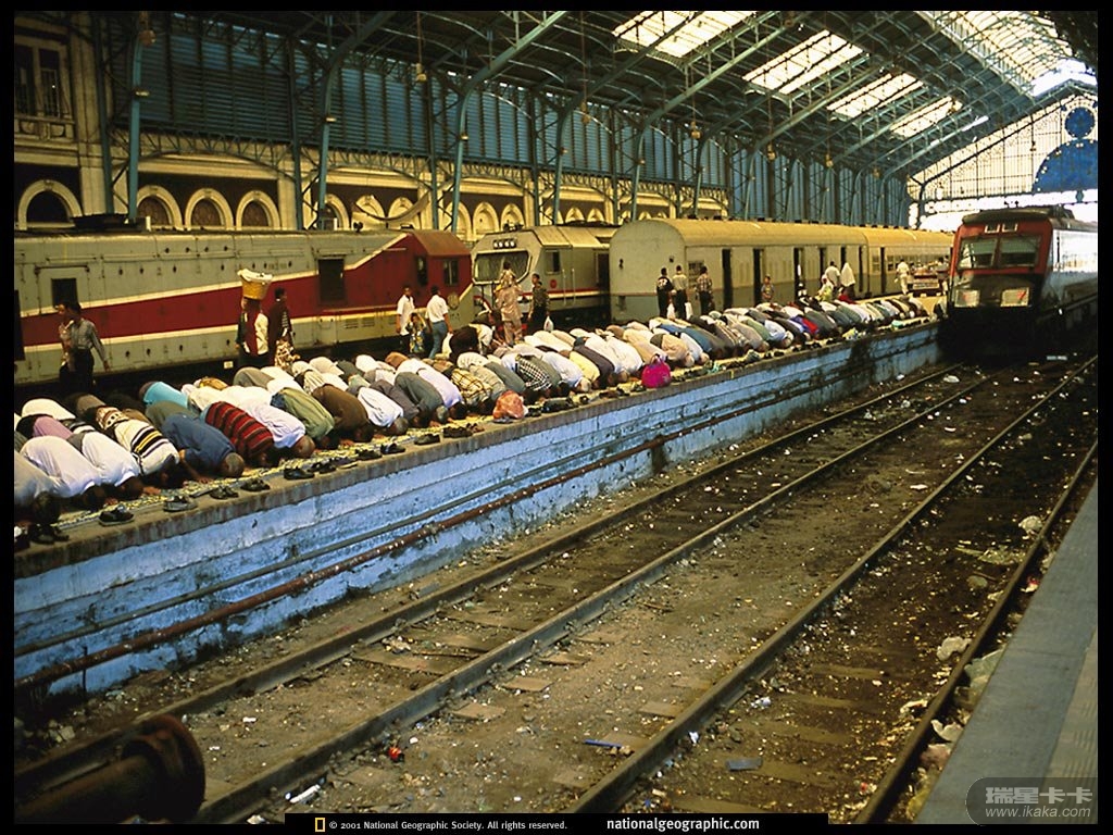 亚历山大火车站,穆斯林们在虔诚祈祷声中跪拜,展现他们对古城的热烈缅怀-但是其整齐划一相当罕见。尽管在罗马统治下,一世纪亚历山大人信奉的宗教融埃及、希腊和罗马神为一体,合成的上帝塞拉皮斯是他们的主神。