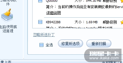 :kaka1: 卡卡升级下可能你的卡卡有问题吧,【忽略所选补丁】就在最下面【修复所选项】左边能看到的