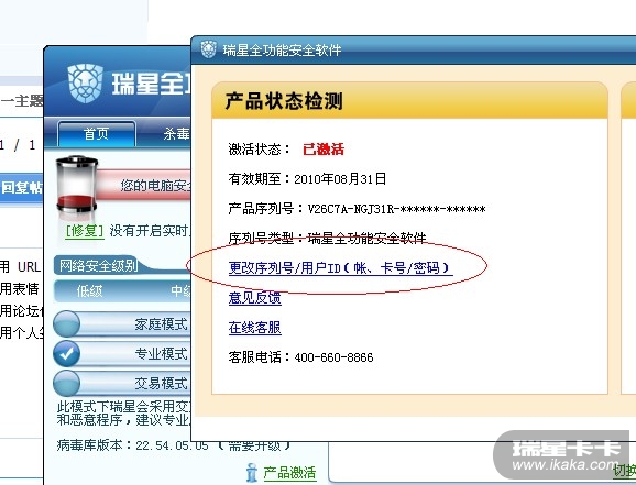 如果楼主购买了新的序列号。点产品激活后,可以在这里更改: