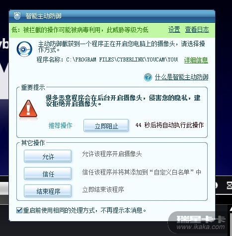 胖哥瑞星默认设置,这是咋地拉?幸好是设置的提示?不然哇咔咔!