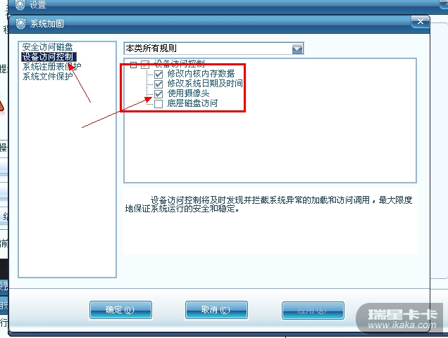 在系统加固中设置----设备访问控制----使用摄像头 --勾选掉就可以了