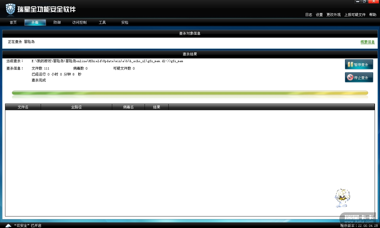 我家两台电脑的瑞星扫描冒险岛的文件夹时都突然扫描完成,不返回也不继续扫描,无法查杀后面的文件,但贝壳、360安全卫士、QQ电脑管家扫描正常并且没有毒,瑞星能不能解决下,是不是出了问题,以前扫描都没事的