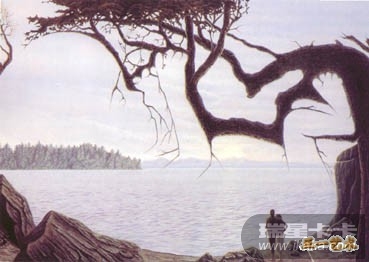 看到了什么?湖中一个人在划船,湖中有一条大鱼,湖边有一棵大树?