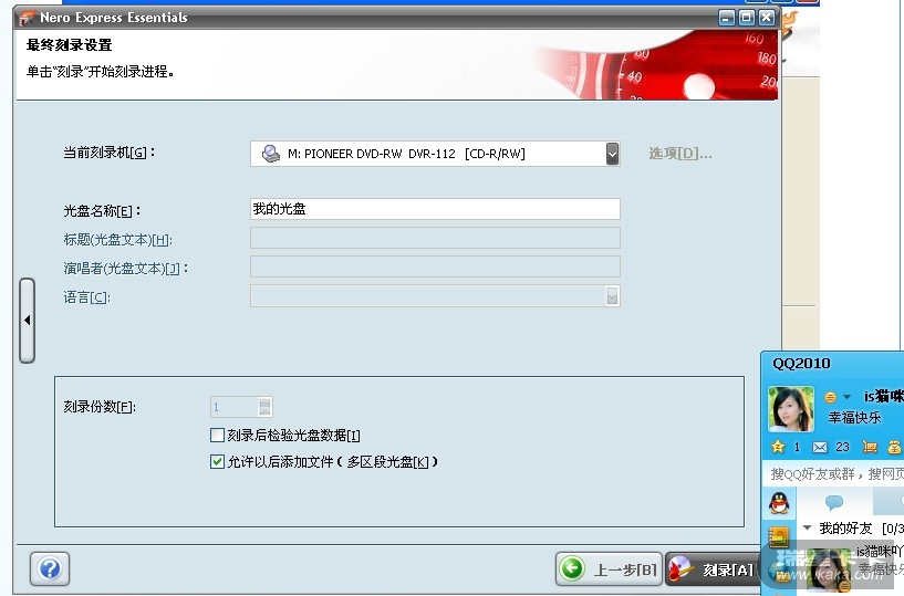 然后nero卸载,清扫注册表所有nero项目,重新再安装,上面的英语没有了,但在添加完要刻录的文件后,刻录的按纽仍然是灰色,弹出驱动器或驱动器里面没有CD碟时"刻录"按纽就却是可点击的.怀疑为数据线接触不良,但把音乐碟影碟等放进驱动器里是可以播放的,可以排除了接触不良的原因.