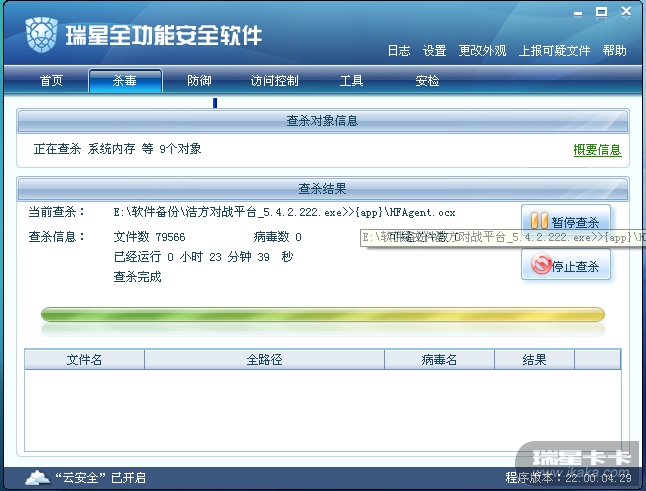 我也出现了这种问题,杀着杀着就自己停了,点暂停查杀和停止查杀都没有反应。