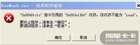 每次开机都会出现“RavmonD.exe应用程序错误”。郁闷!!!!修复过瑞星,删了重装过瑞星都不能去掉,到底怎么回事啊?请高手指教!!!!用户系统信息:Mozilla/4.0 (compatible; MSIE 7.0; Windows NT 5.1; QQDownload 627; Mozilla/4.0 (compatible; MSIE 6.0; Windows NT 5.1; SV1) ; CIBA; .NET CLR 2.0.50727; .NET CLR 3.0.4506.2152; .NET CLR 3.5.30729)