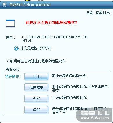 使用Sandboxie(沙盘),结果被瑞星屏蔽了,要怎么设置才能使用这个软件?找了半天设置,实在找不到设置的地方