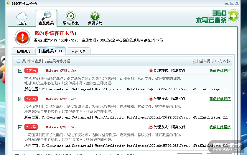就算有病毒,用360 处理后,第二天用360一查还有病毒,虽然病毒名称不一样,但我看都是同一个文件夹,哪为高手给我指导一下啊?