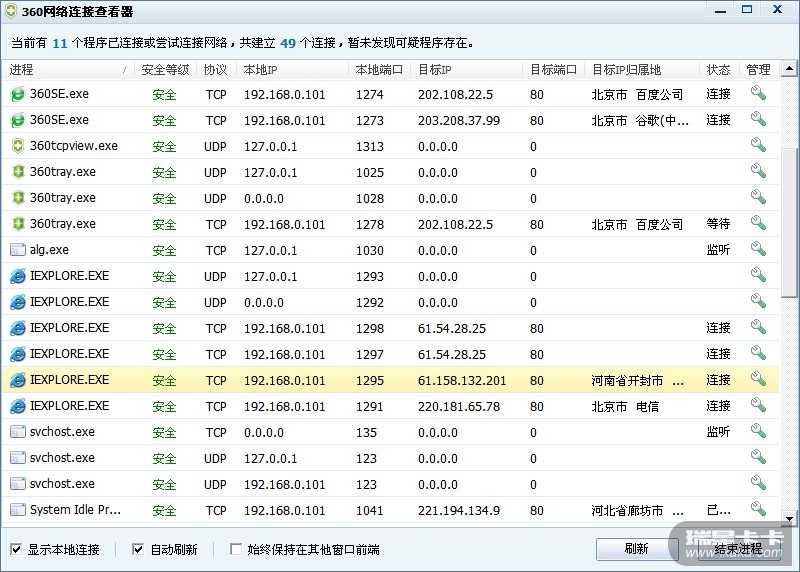 这里用了一下360的流量监控功能,发现了ie链接河南的一个网站