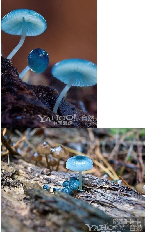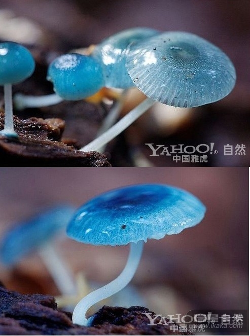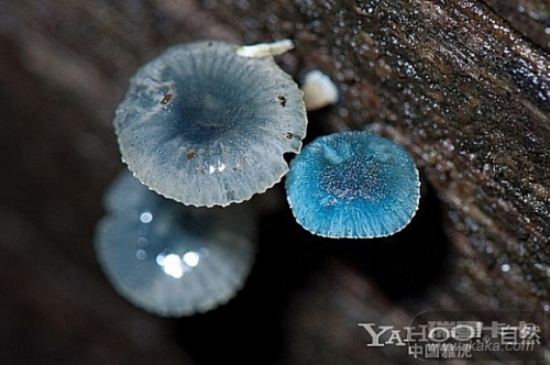 mycena interrupta,产于澳大利亚塔斯马尼亚岛。传说吃下眼睛可以变蓝色。