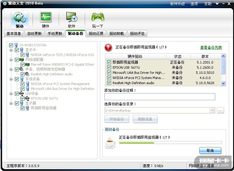 设置安装路径和驱动备份的路径(默认安装在C盘,驱动备份在D盘)