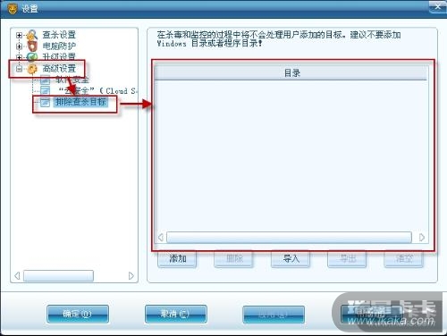 打开杀毒软件点击【设置】——【详细设置】——【高级设置】——【排除查杀目标】