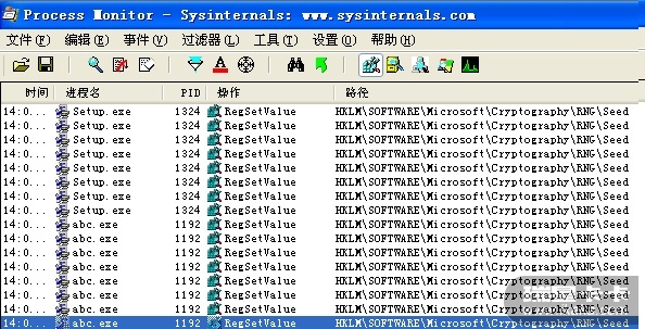 我们看到写操作只有HKLM\SOFTWARE\Microsoft\Cryptography\RNG\Seed
