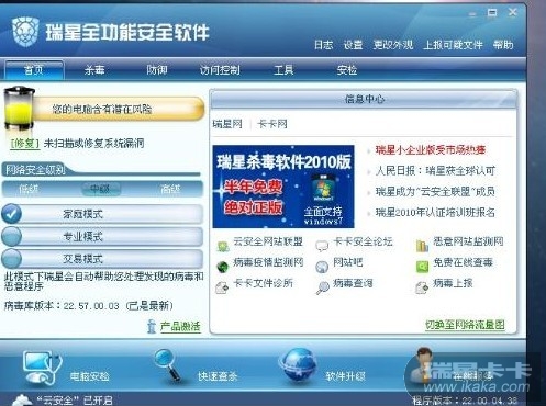 请修复瑞星软件,依次点击『开始』-『程序』-『瑞星全功能软件』-『添加删除组件』-『修复』,按照提示修复完成观察是否正常。