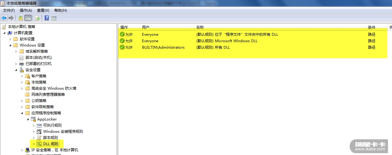 另:windows7 提示:启用applocker的DLL规则,有可能拖慢系统运行。我设置如上规则后,重启电脑,并运行了RAV2011、OPERA浏览器、IE8、 OFFICE2010 等,未发现系统速度变慢。