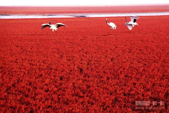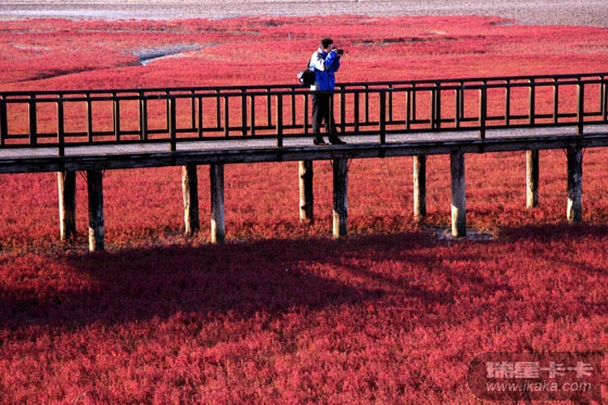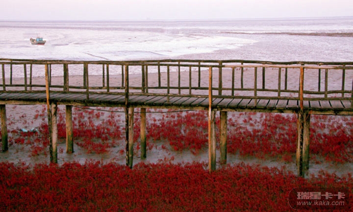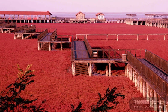 希腊》火山挥魔棒海滩红色、黑色、白色.