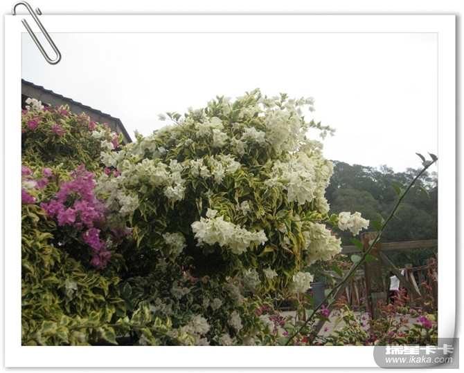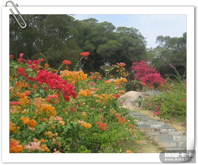 沿着上李水库旁的山路往前走,不一会儿就到了门口。从木质栈道与石头栈道拾级而上,两边是各样各式的三角梅,一期面积3.9万平方米,共栽种三角梅1万多株,50多个品种。在这里,有许多品种都是平日难得一见的,如皱叶深红三角梅、白色三角梅、重瓣三角梅、砖红三角梅、光叶斑叶三角梅、金叶紫花三角梅等等。