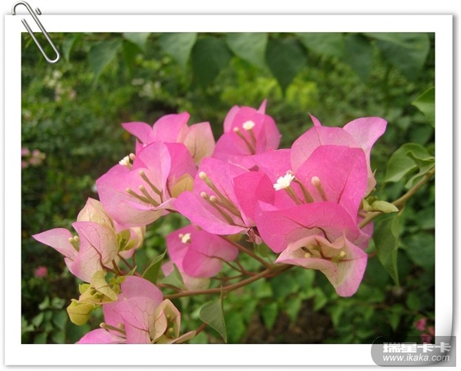 三角梅不是梅花,胜似梅花,遍地欲燃,绚烂如霞。争奇斗艳的三角梅,把东坪山的山谷点缀得生机勃勃格外美丽。只见有的三角梅满枝都长了五彩缤纷的叶子(大家还以为那是花),露出几根银色的花蕊,像一个个小姑娘在花中沉思。重瓣三角梅的花瓣则紧紧挨在一起,像是穿着百褶裙。一阵微风吹来,又像一位婀娜多姿的少女翩翩起舞,时隐时现。