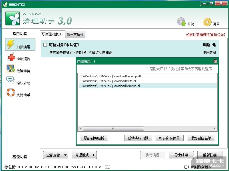 当然,不排除清理助手的误报可能。请工程师们确认此问题了,谢谢.