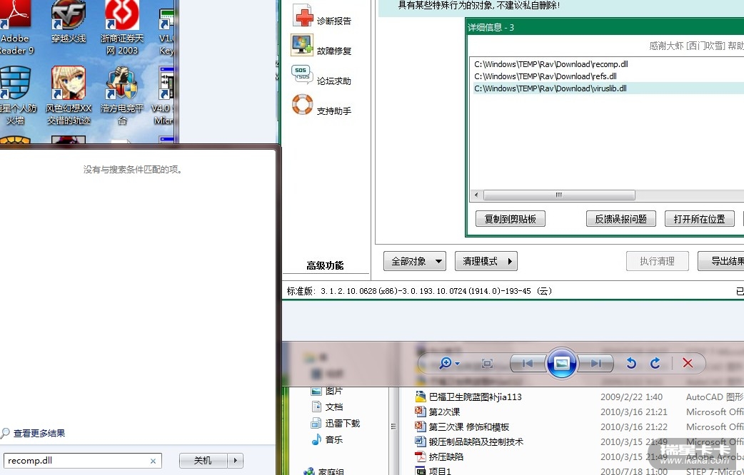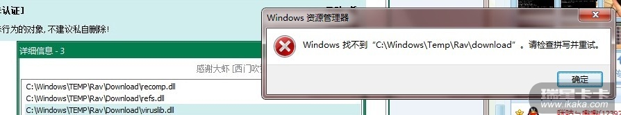 尝试过提取这三个文件 不过由于瑞星的自我保护隐藏机制 提取均失败 如图: