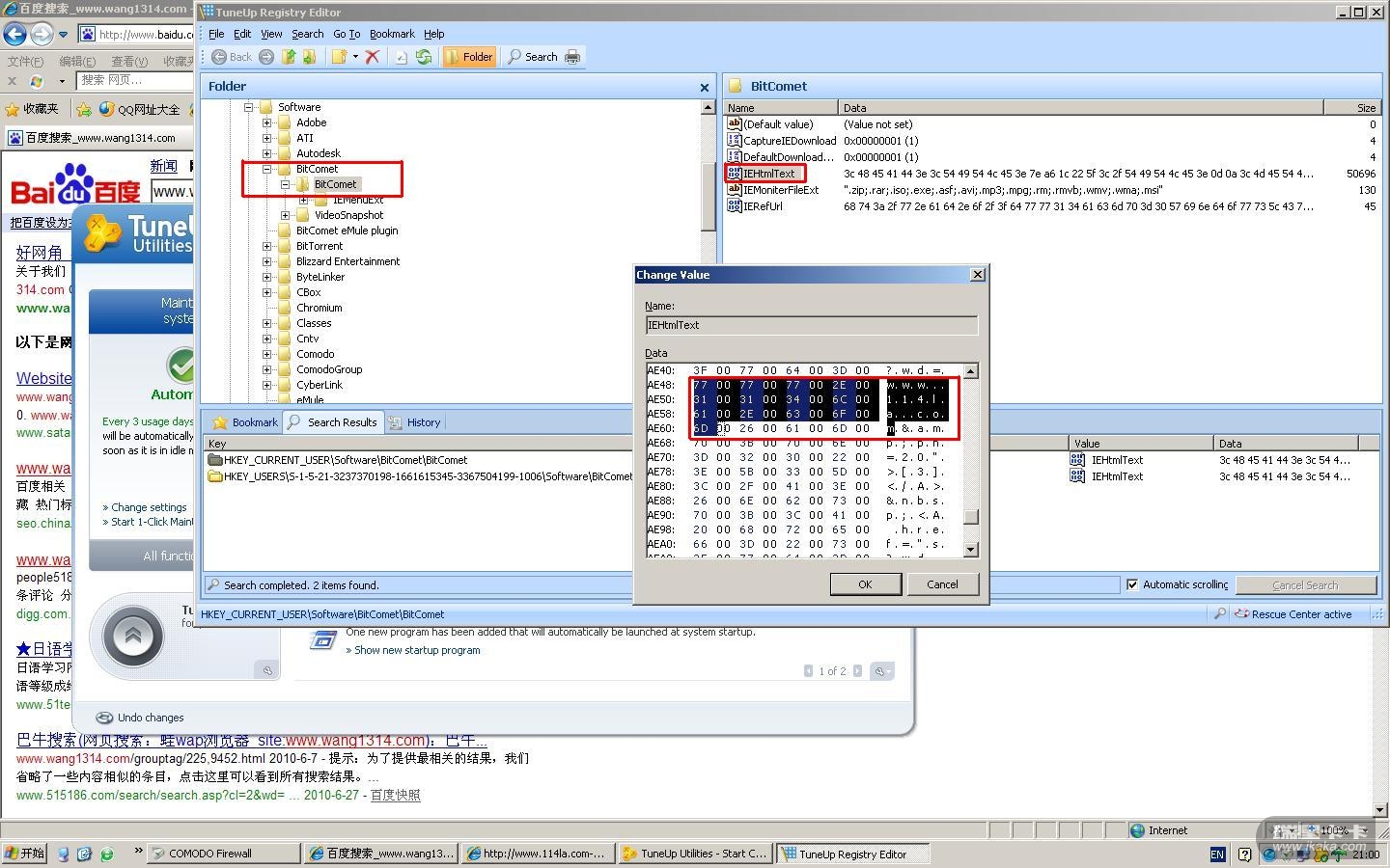 用TuneUp Utilities带的TuneUp Registry Editor 搜索