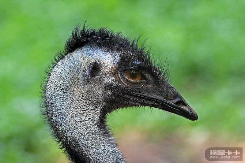 鸸鹋是現存世上除了鴕鳥以外最大的鳥類,為鸸鹋属唯一的物种。由於僅分布於澳大利亞,是國徽上的動物之一。鸸鹋跟其他平胸类的鳥類一樣,雖然牠還保留有一對細小的翅膀,但已經不會飛行。鸸鹋的羽毛很柔軟,毛色通常都是啡色。身高由1.5至2公尺,體重約45公斤,最多不超過60公斤,而雄鳥的體型通常較為細小。他們可以以快速和省力的小跑走很遠的路,衝刺時最快速度可以高達每小時50公里。图为鸸鹋头部特写。
