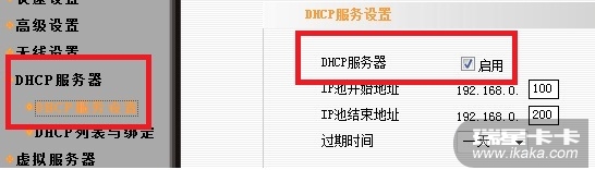 4)再选择左侧的DHCP服务器,在右侧勾选启用DHCP服务器,设置地址池开始和结束地址,如果之前修改了IP地址为192.168.2.1,那么可以修改地址池的开始和结束地址,分别如:192.168.2.100和192.168.2.199——保存。