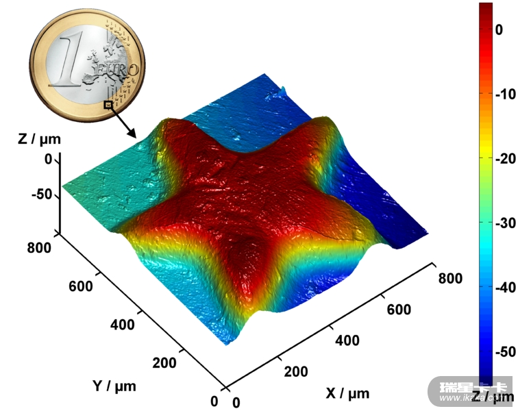 马文·闵斯基是一位美国人工智能领域的科学家,麻省理工学院人工智能实验室的创始人之一。他是美国工程院和美国科学院院士,于1969年获得图灵奖,1990年获得日本奖,2001年获得本杰明·富兰克林奖章。他是共聚焦技术的发明人,尤其是共聚焦白光显微镜。这项技术已经成为一种材料科学三维表面特性测量的通用技术。这张图片显示了1欧元硬币上的一颗星星的三维表现,表面的颜色显示出其高度。