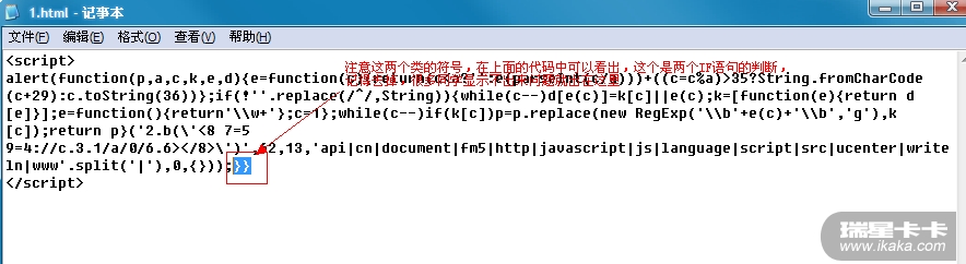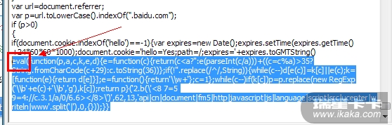 关键位置:发现有eval,然后立刻想到networkdition老师经常提起的alert替换的方法。把蓝色标记出来的地方复制到记事本上,命名为1.html,然后进行处理。
