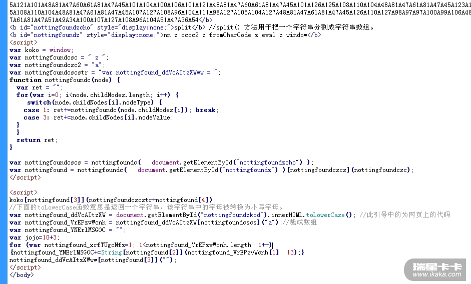 nottingfound是数组“nn z cccc9 z fromCharCode z eval z window”(用"z"分割)