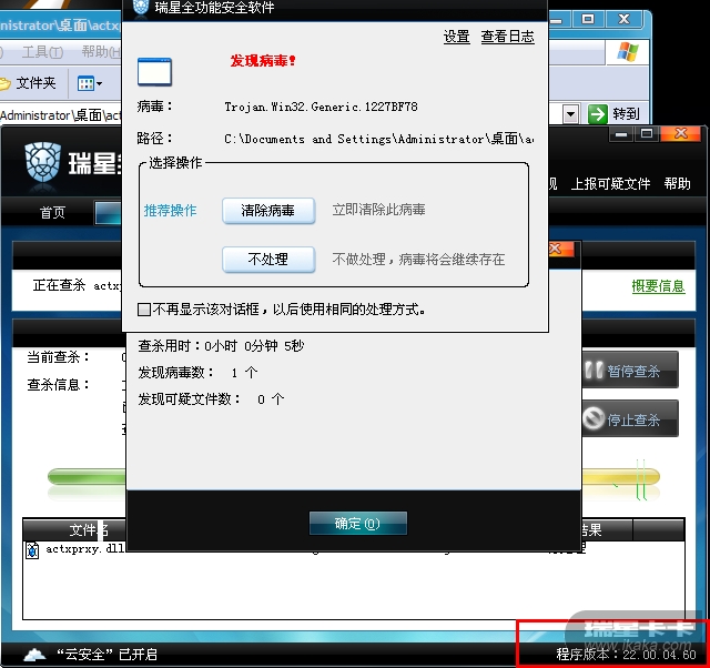 Actxproxy.dll应该没有问题,试过直接从安装光盘上恢复出来的也马上被瑞星干掉了