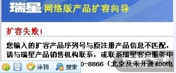 这个应该是你基本包的里注册信息与你现在购买的扩容包里填的注册信息不一致,可以找下你这个产品的销售商问下。
