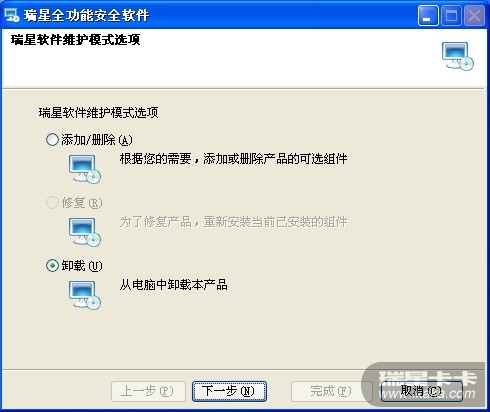 小插曲,其实,我还真没注意瑞星卸载如此复杂,昨天爷爷来电话要卸载这个软件,我就电话里指导,爷爷问我说,没成功,又回到桌面了。我就狂晕。