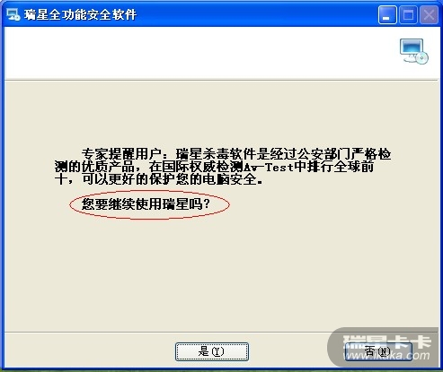 关键是,第四张图和第二张图里面竟然提示“您要继续使用瑞星吗”都习惯卸载的一般步骤了,我就点击了是,结果又重新回去了,没有完成卸载。