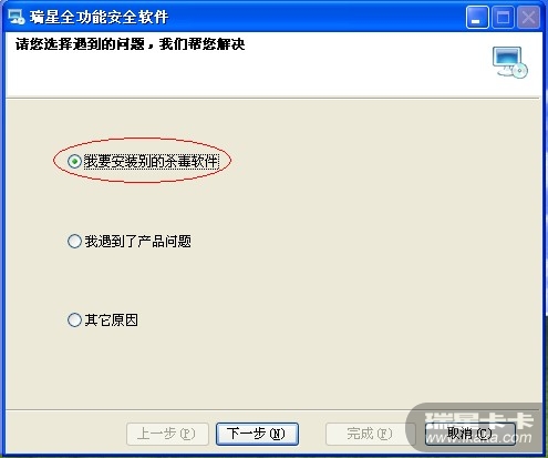 大家注意,在第三张图的时候询问为何要卸载瑞星?当我选择换用其它产品时,下一步却惊人的发现,