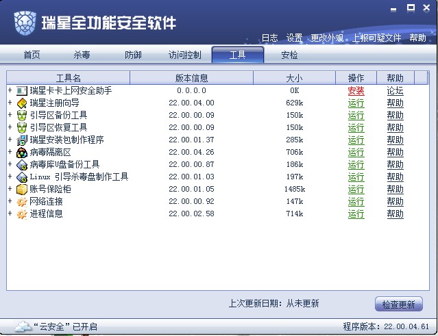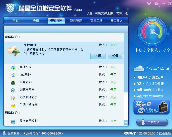 瑞星最大的问题在于,升级后当需要重启时,会退出监控。