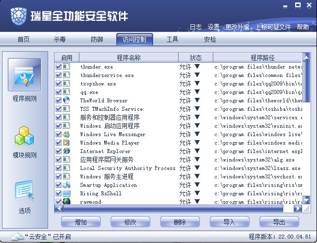 我的版本是:23.00.69.78怎么没有访问控制  程序规则 那些选项呢?????联系QQ531938611