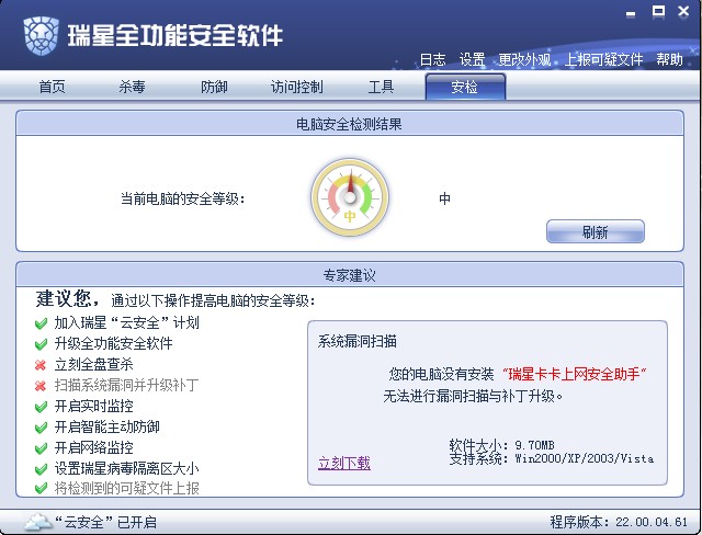 其实我觉得UI还是可以改进的,看看卡巴、诺顿的UI,瑞星还是不够大气。