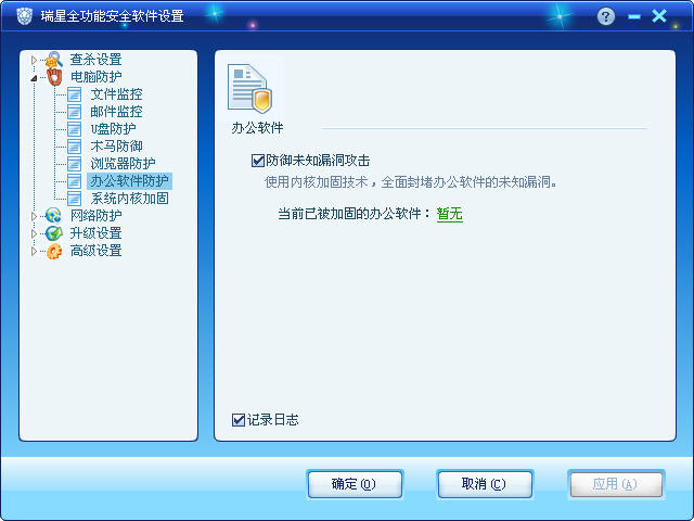 如安装OFFICE却显示暂无,可以点击暂无,2011版可以自动扫描办公软件并加固防护。